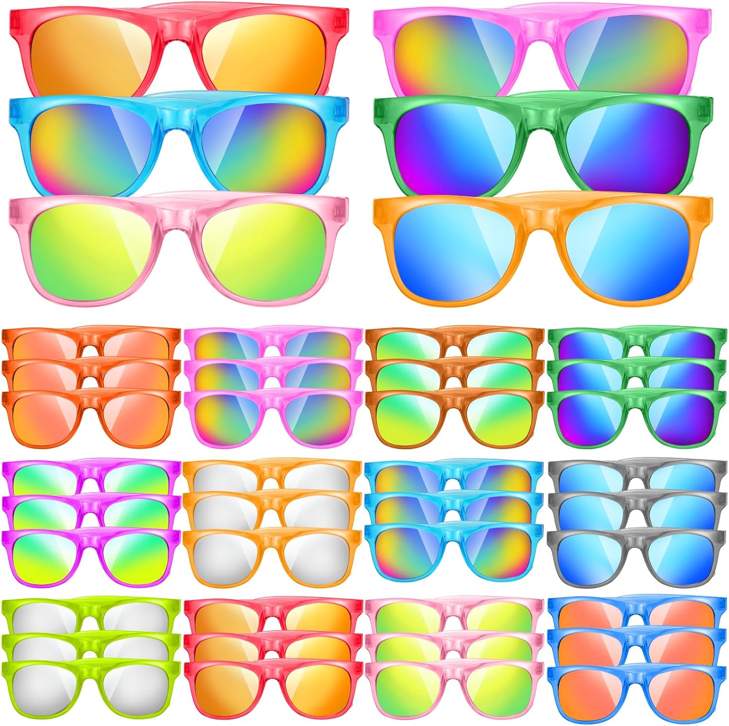 - Party Favor: Kids sunglasses bulk are a hit at outdoor activities, Graduation, birthdays, summer camps, 80s retro party, end of school year gift for students and more. Goodie bag Stuffers and class prizes, allowing children to sport their favorite colors and styles with joy.