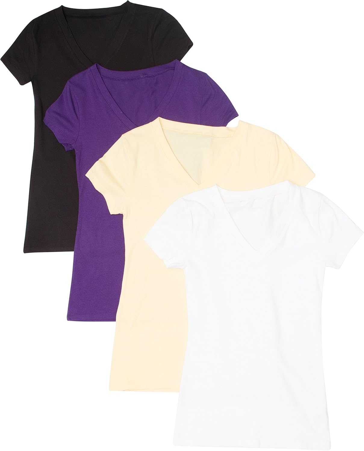 Sexy Basics Womens' Cotton Stretch V Neck Color T Shirts | Casual & Active Basic Short Sleeve Tops | Multi Packs