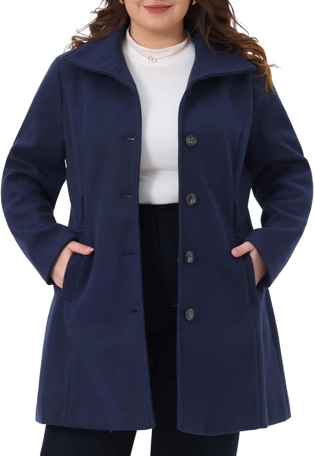 Agnes Orinda Plus Size Winter Coats for Women Notch Lapel Single Breasted Peacoat with Belt Trench Coats Jackets Outwear