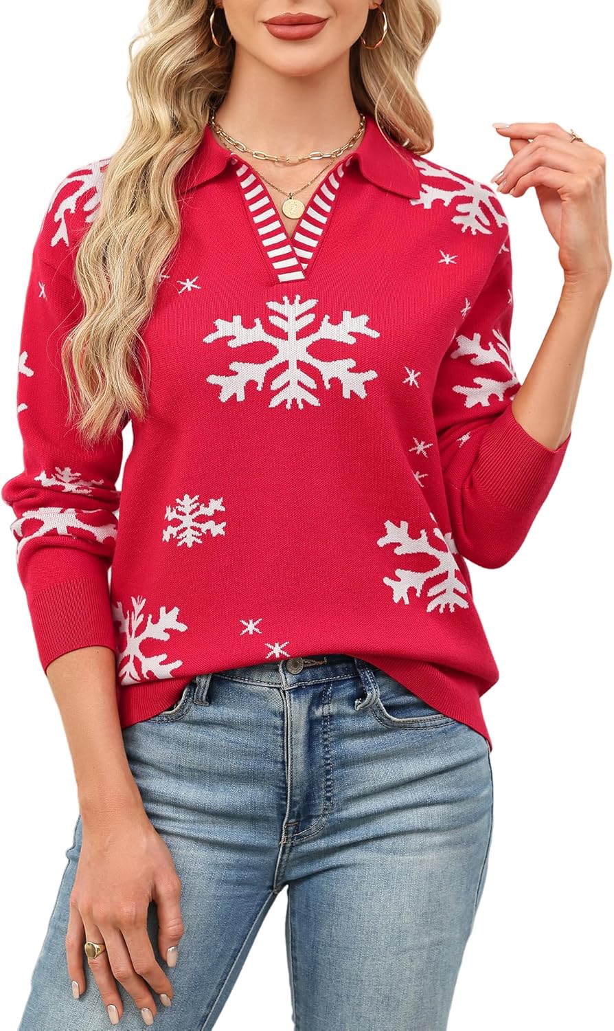 LOMON V Neck Long Sleeve Loose Sweaters Color Block Striped Knitted Pullover Jumper Tops
