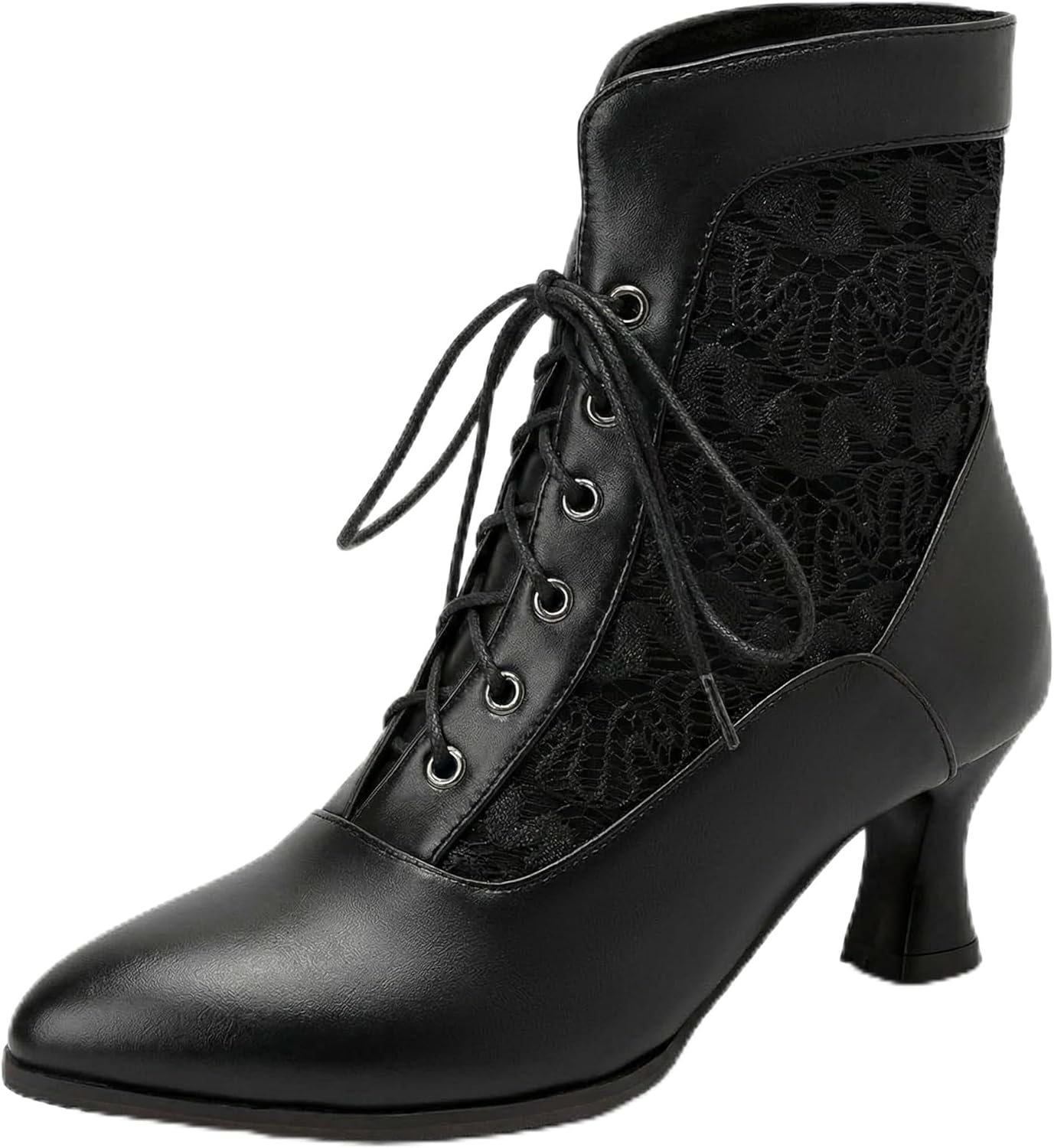 LanreyTaley Women Victorian Lace Booties Wedding Bridal Ankle Boots Witch Costume Boots Mid Heel