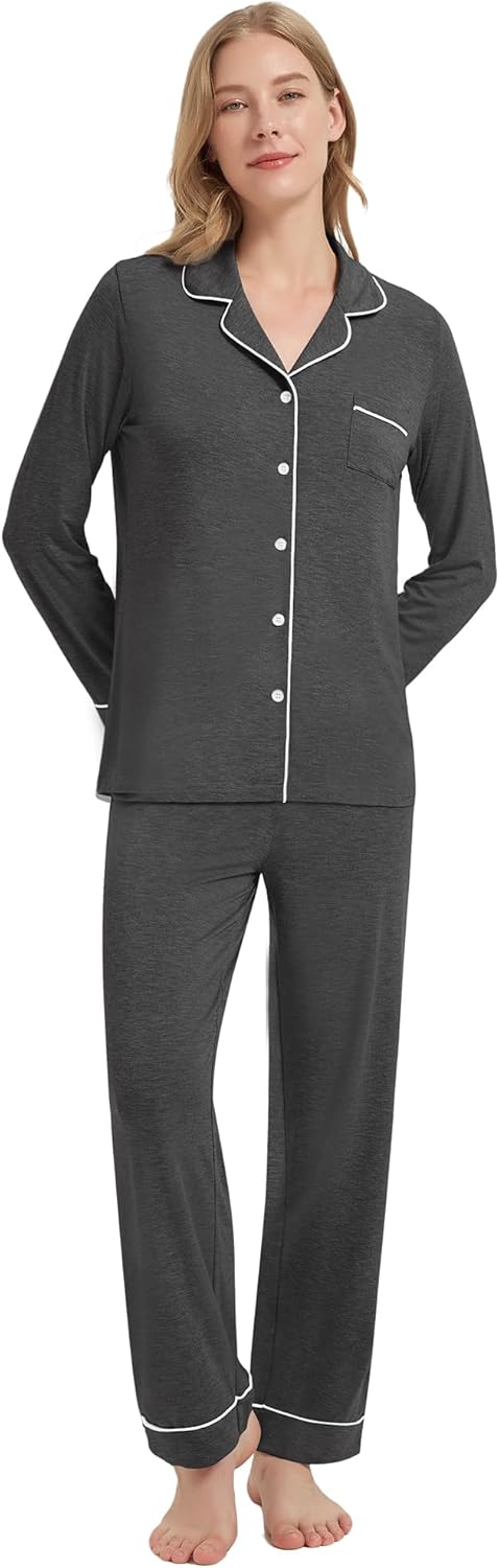 WiWi Viscose from Bamboo Women's Pajamas Set Super Soft Button Down Top and Pants Sleepwear Cooling Pjs S-3X