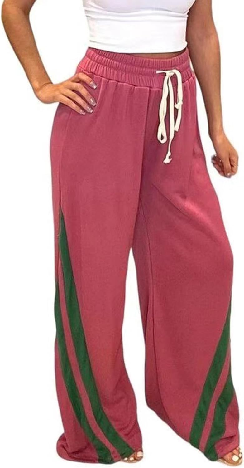 Voghtic Wide Leg Sweatpants Women Striped Drawstring Hight Waisted Loose Casual Pants Lounge Baggy Jogger Track Trousers