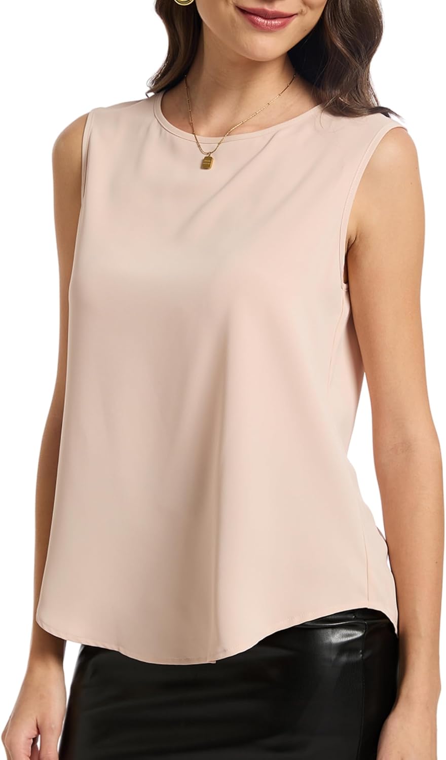 Womens Chiffon Tank Tops Crewneck Sleeveless Blouses Summer Tops Work Shirt