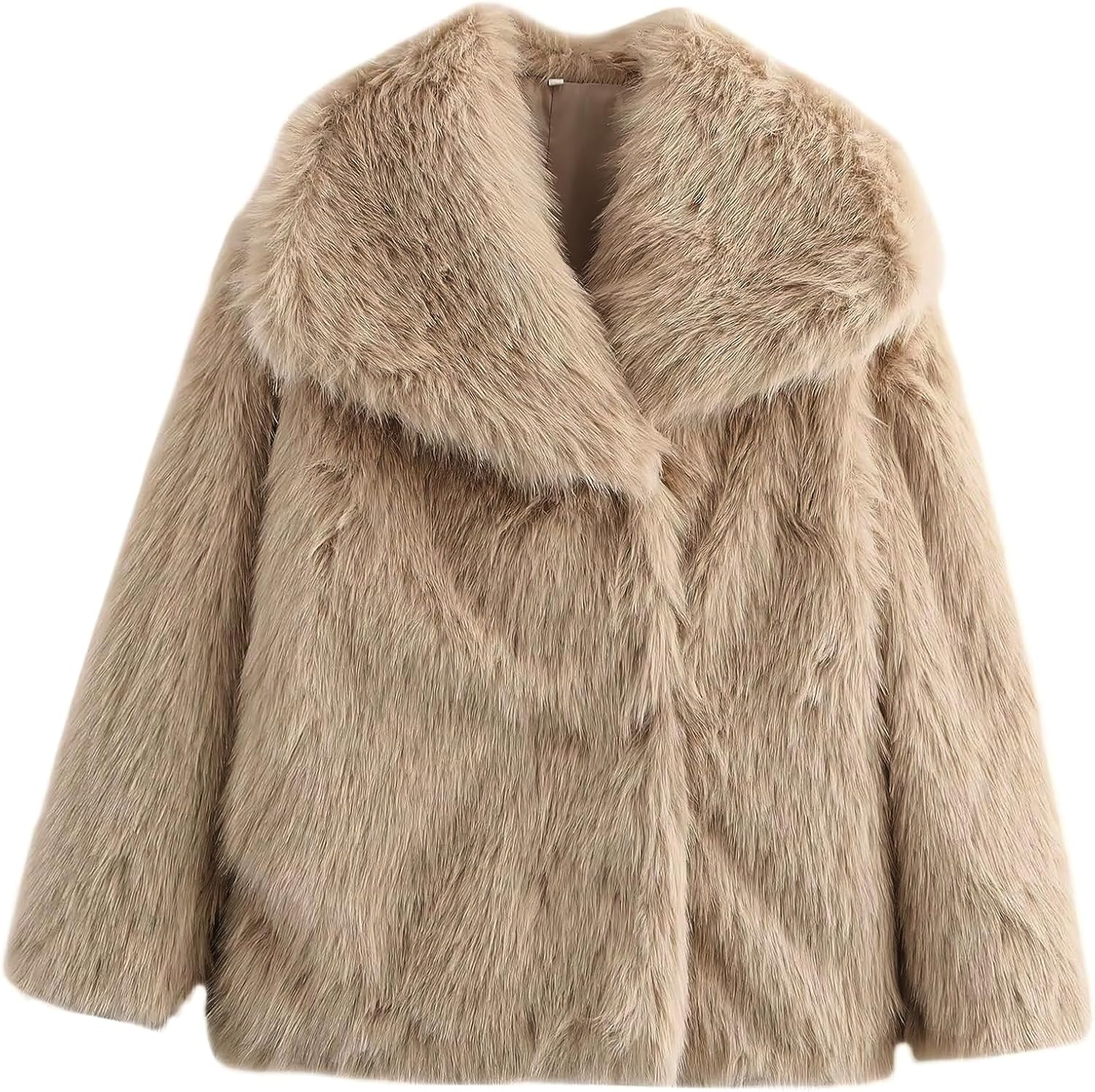 ebossy Women's Faux Fur Crop Jacket Long Sleeve Cozy Winter Warm Fluffy Leopard Pure Color Sherpa Coat with Pockets