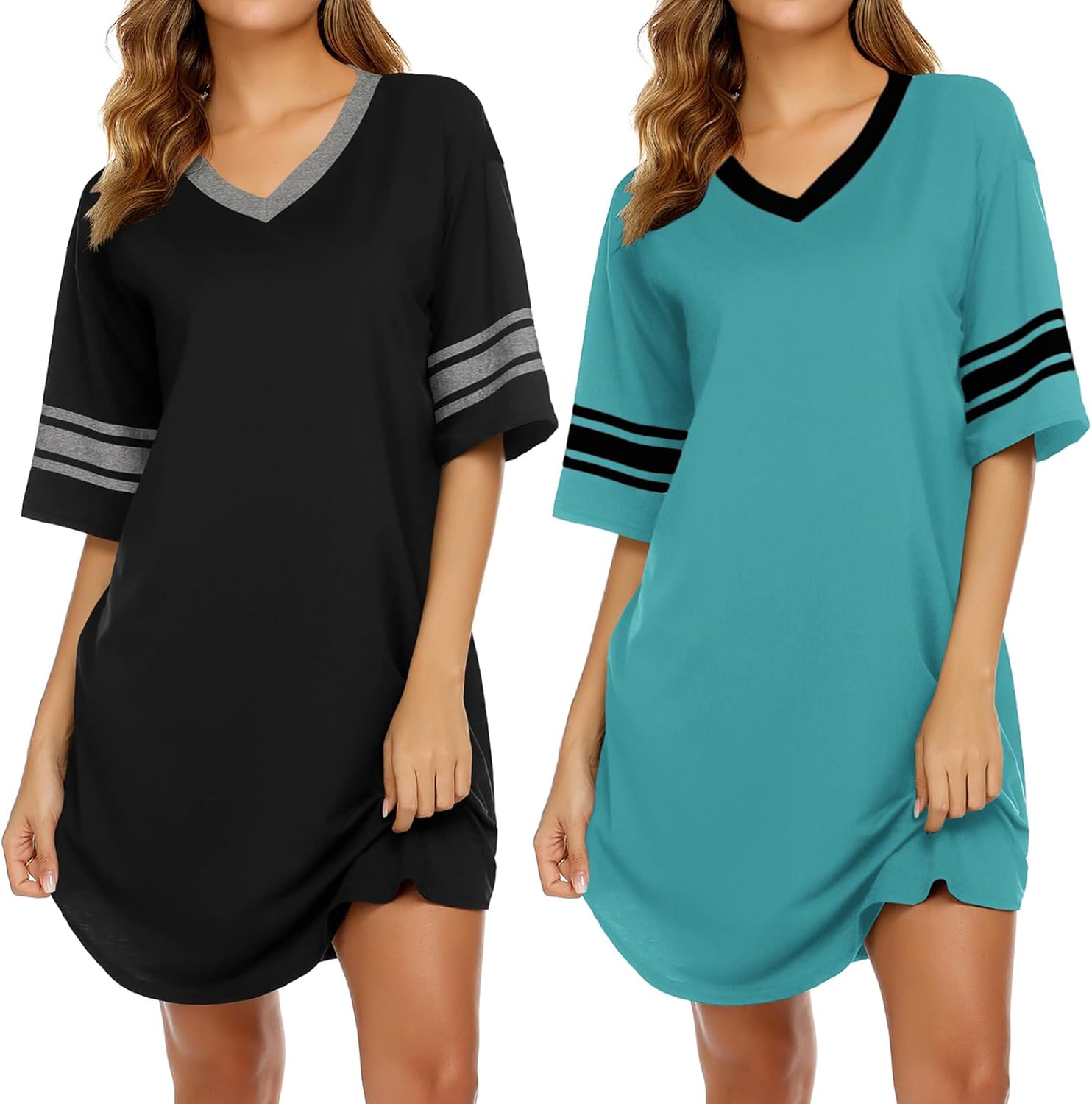 Ekouaer Nightgowns for Women 2 Pack Sleepshirts Short Sleeve Nightshirt V Neck Sleepwear Casual Pajama Dress