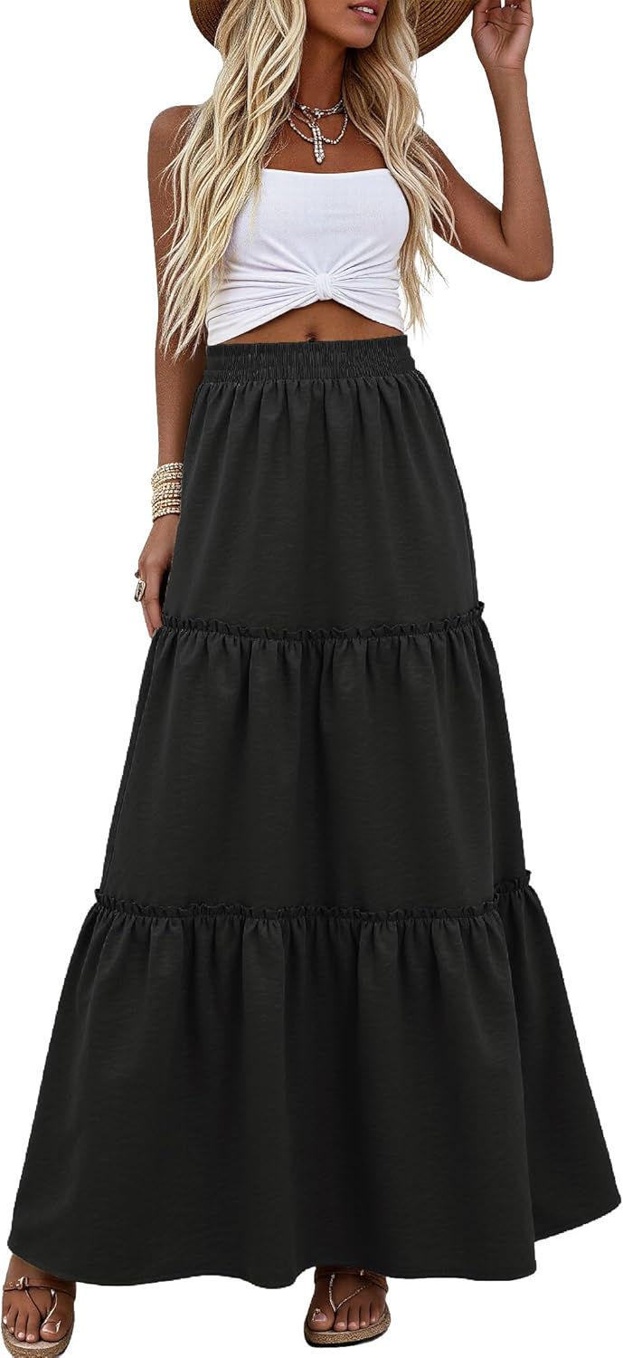 CZYINXIAN Maxi Skirt for Women High Elastic Waist Pleated Swing A-Line Flared Long Skirts