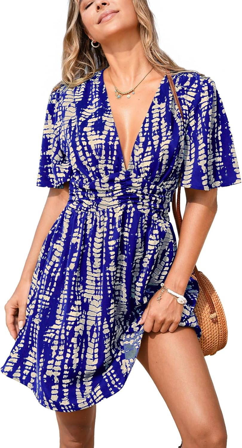 CUPSHE Women's Summer Dresses Abstract Plunging V Neck Short Sleeve Elastic Waist Mini Dress