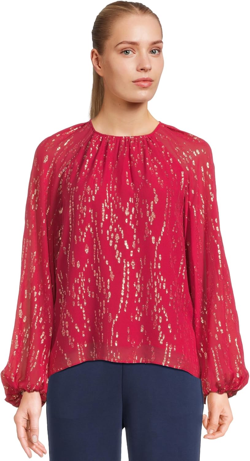 Lilly Pulitzer Rowe Long Sleeve Top for Women - Viscose-Metallic Fabric - Blouson Sleeves - Smocked Cuffs