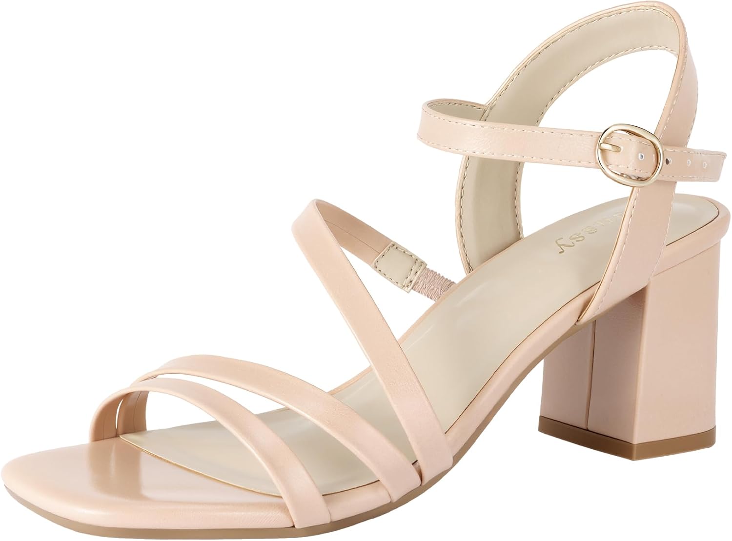 Jussy Women's Chunky Block Strappy Heeled Sandals 2.75 Inch Square Open Toe Ankle Strap High Heels Wedding Bridal Shoes Low Heels Sandals for Party Dress