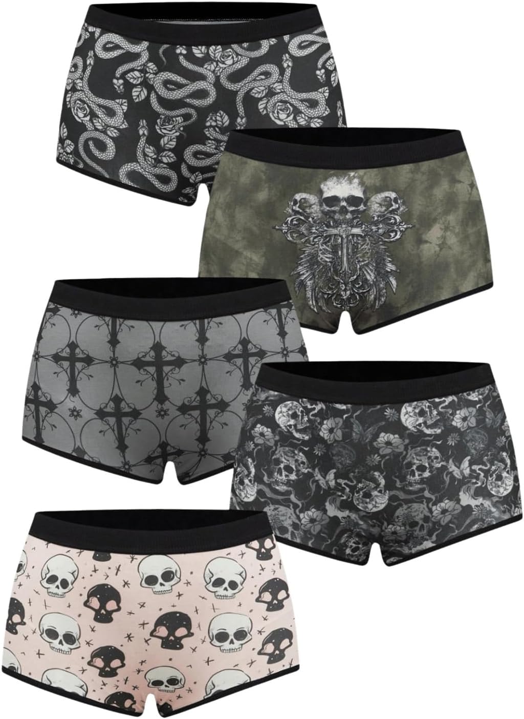 WDIRARA Women's 5 Pack Goth Graphic Panties Boyshorts Mid Rise Shorts Briefs Boxer