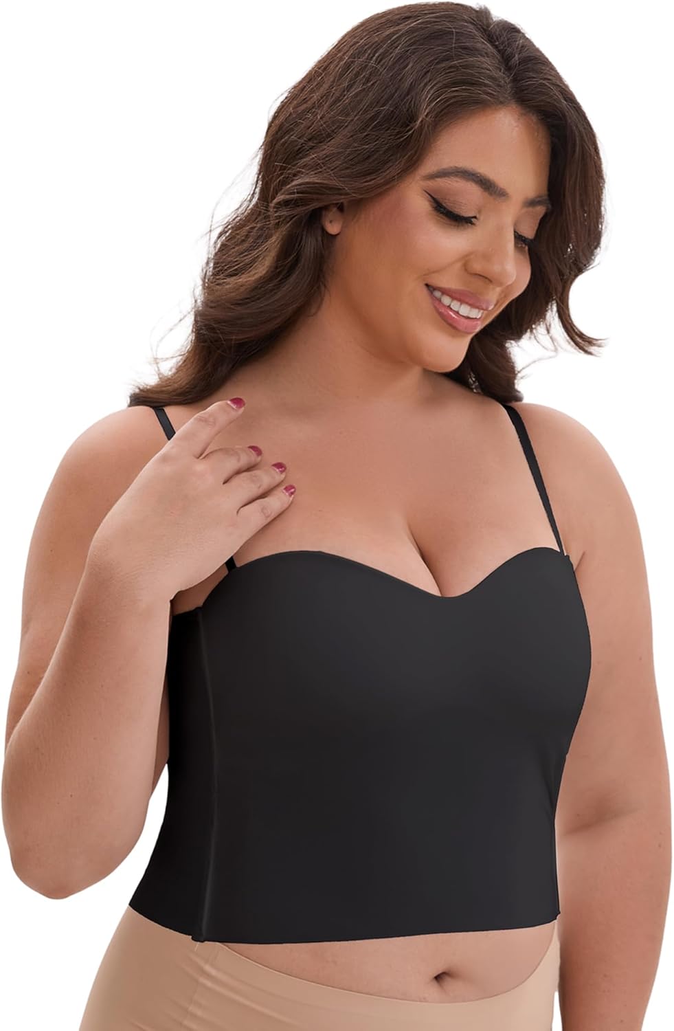 Allegra K Plus Size Camisole Tank Tops for Women Spaghetti Straps Wireless Padded Undershirts Sweetheart Neck Lingerie