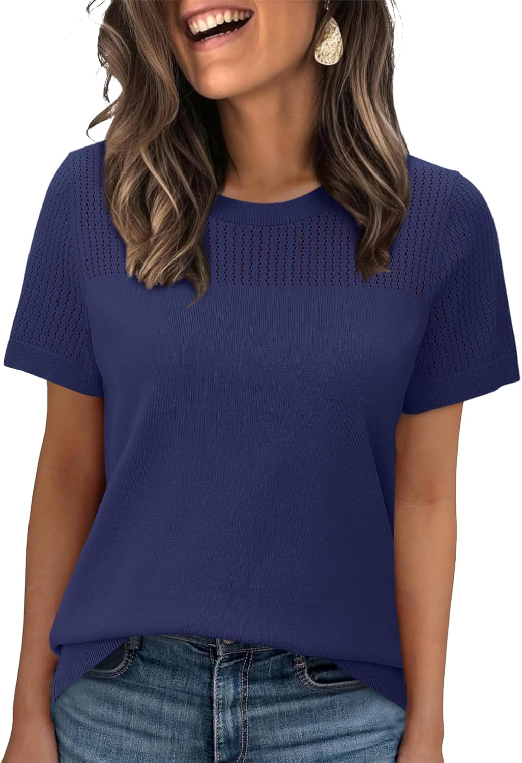 WIHOLL Short Sleeve Sweater for Women Trendy Summer Tops 2025 Early Fall Fashion Business Casual Outfits