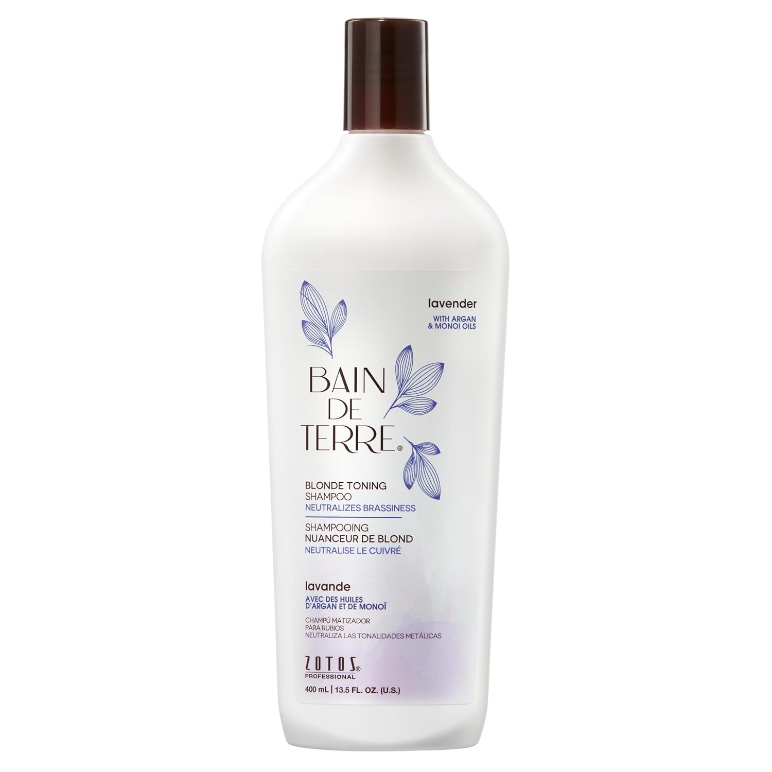 Bain de Terre Lavender Blonde Toning Shampoo, Neutralize Brassy Tones for Cool Blonde, Highlighted or Gray Hair, with Argan & Monoi Oils, Paraben-Free, Vegan, 13.5 Fl Oz