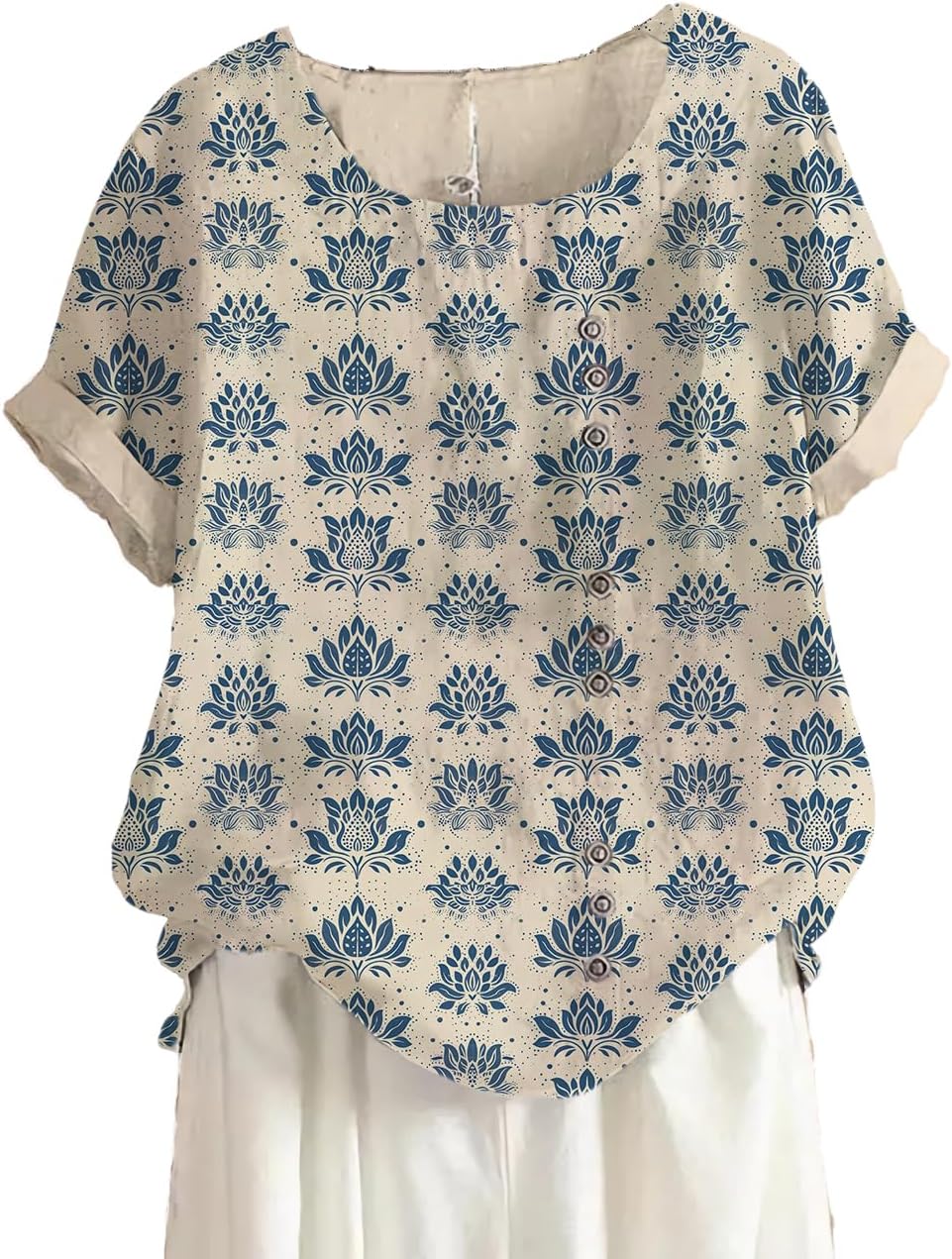 HOTYD Womens Short Sleeve Boho Tops Plus Size Casual Crew Neck Vintage Floral Print Graphic Tees Ladies Summer Tops