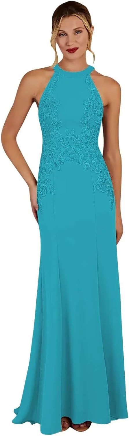 KDTM Satin Lace Mother of The Bride Dresses Long Halter Sleeveless Formal Dresses for Women Wedding Guest