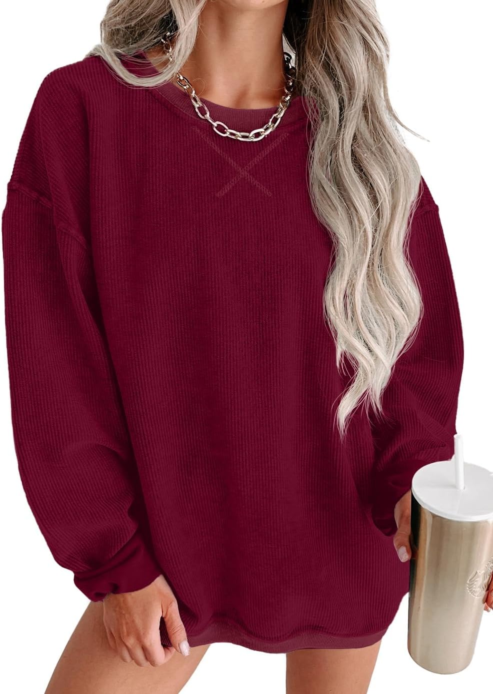 Womens Sweatshirts Casual Cored Corduroy Pullover Tops Oversized Long Sleeve Crewneck Shirts
