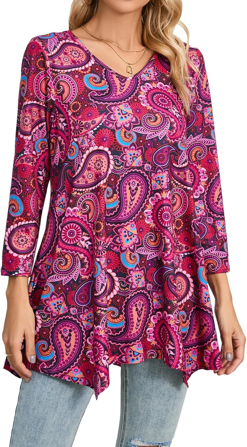 ENMAIN Womens Tunics Tops 3/4 Length Sleeve Plus Size Long Tops to Wear with Leggings Casual Loose Fit Dressy Flowy Blouses