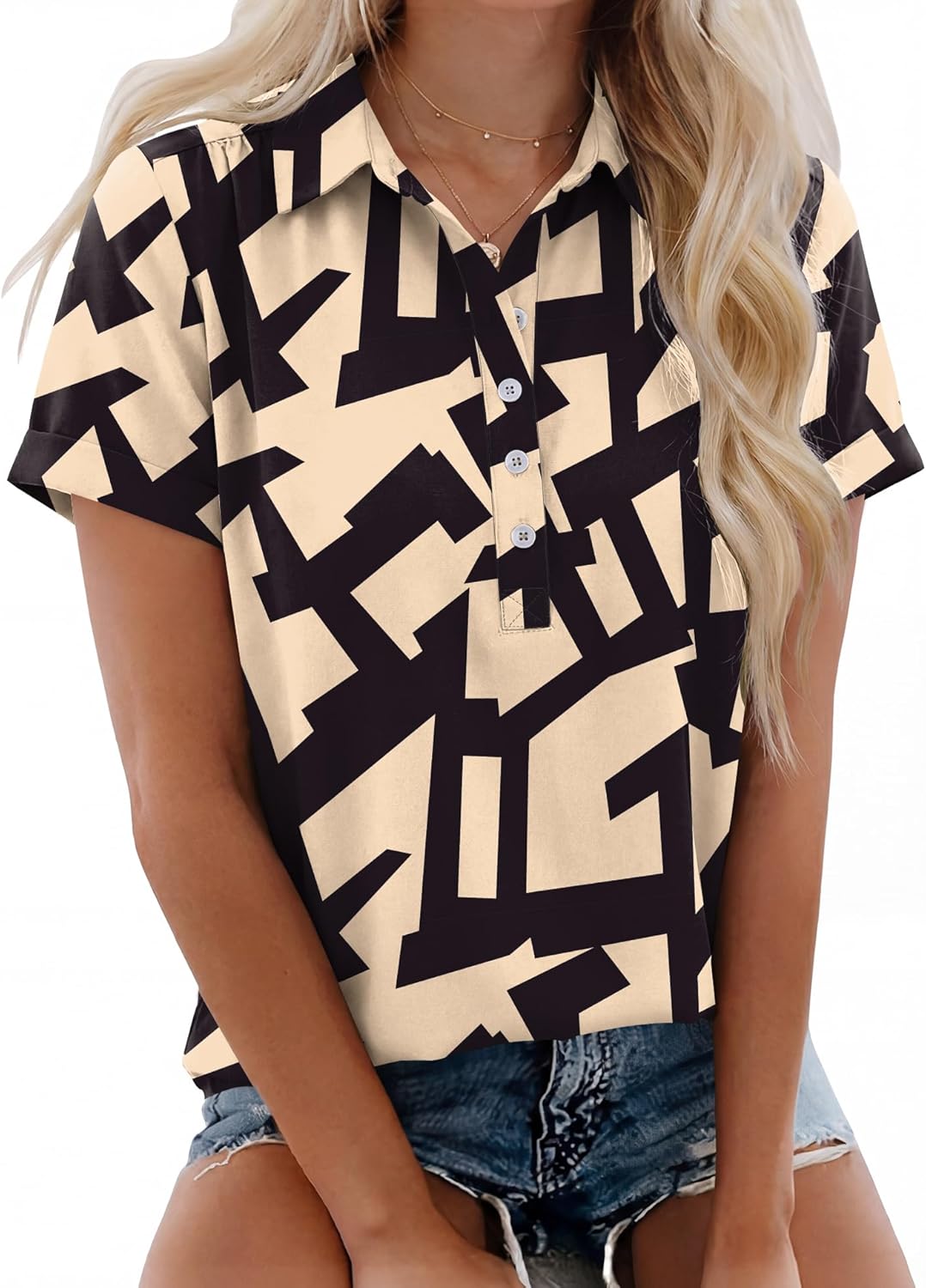 Rapbin Spring Tops for Women 2026 Women Blouses Short Sleeve V Neck Casual Collared Office Work Shirts Tops