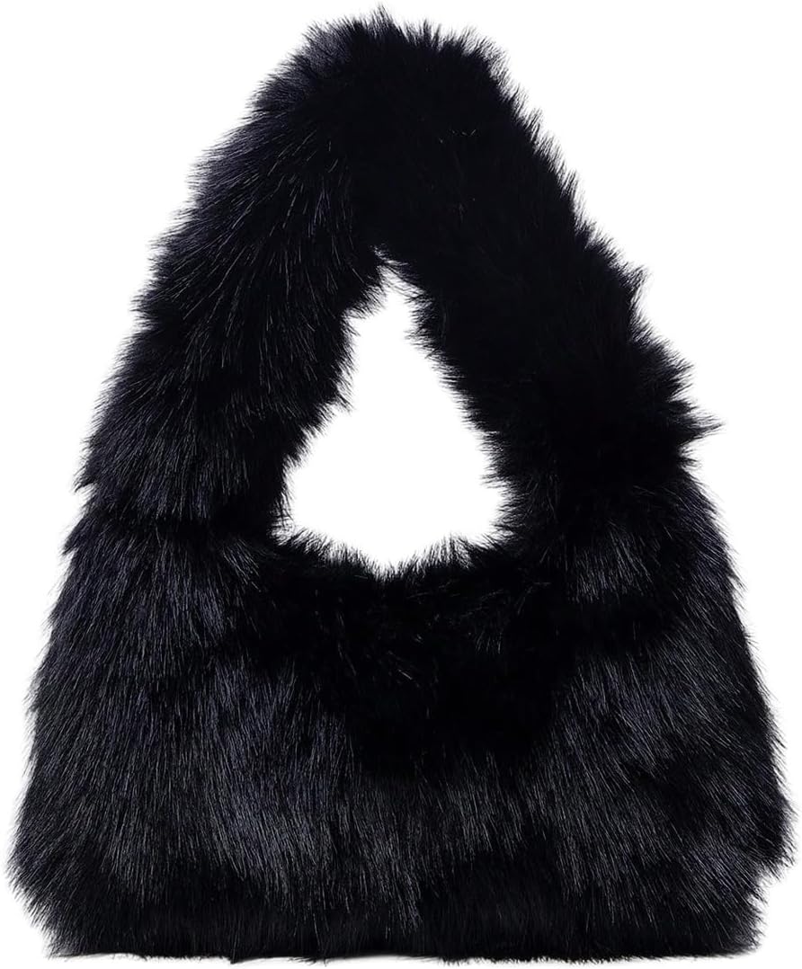 SHENHE Women's Fuzzy Faux Fur Crescent Shoulder Bag Plush Purse Underarm Handbag Hobo Tote