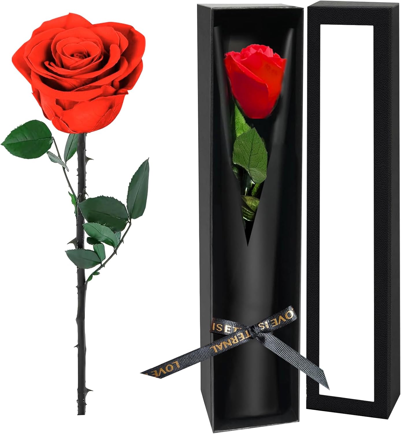 Single Forever Roses in a Box,Preserved Flowers for Delivery,Preserved Rose Gifts for Women, Real Roses Gift for Her, Mom Birthday Gifts, Mothers Day Flowers,Valentines Flowers,Presents for Her,Red