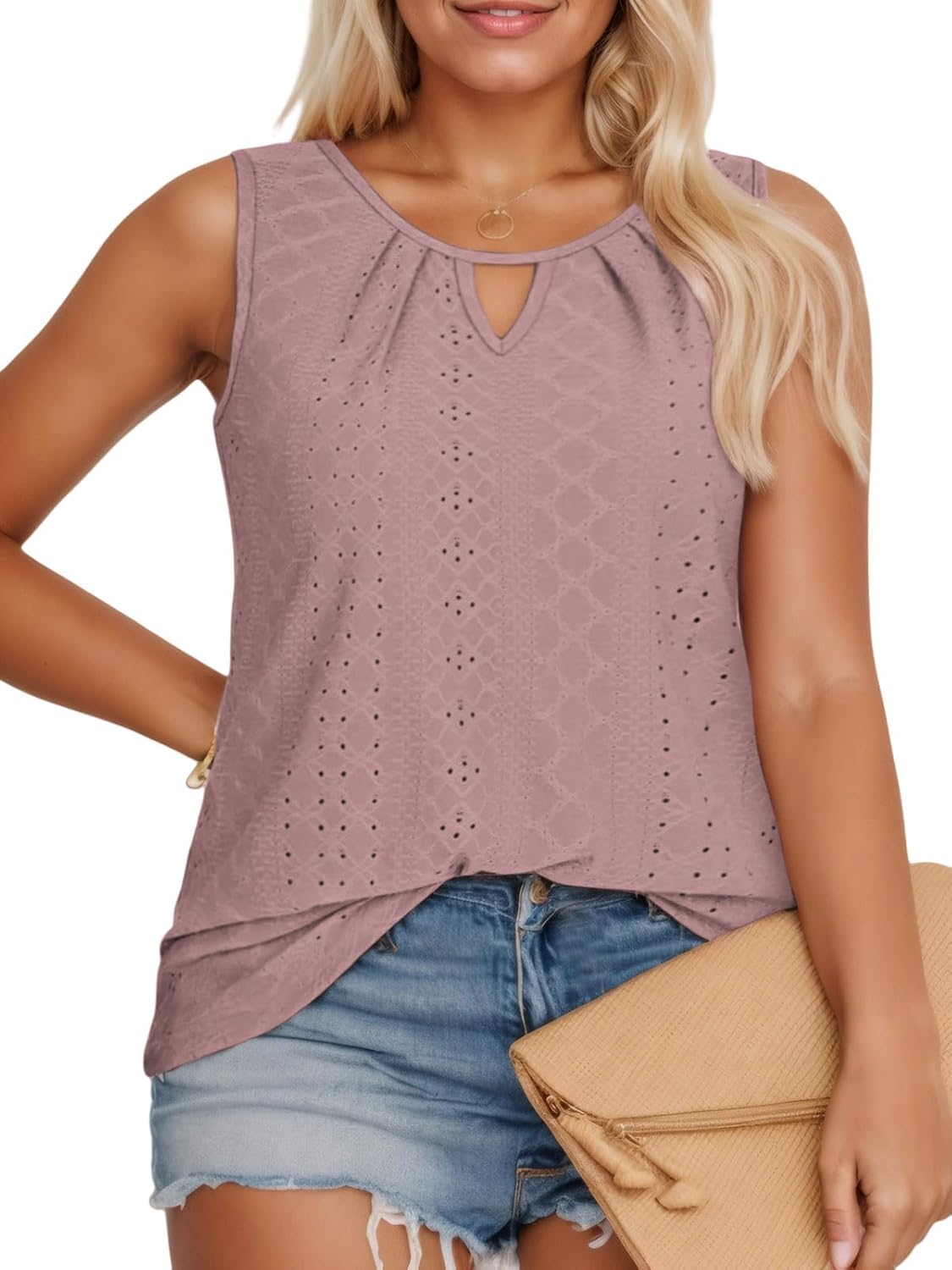 VISLILY Plus-Size-Tank-Tops for Women Summer Trendy Keyhole Neck Shirts Cute Eyelet Tunics Casual Sleeveless Blouse XL-5XL