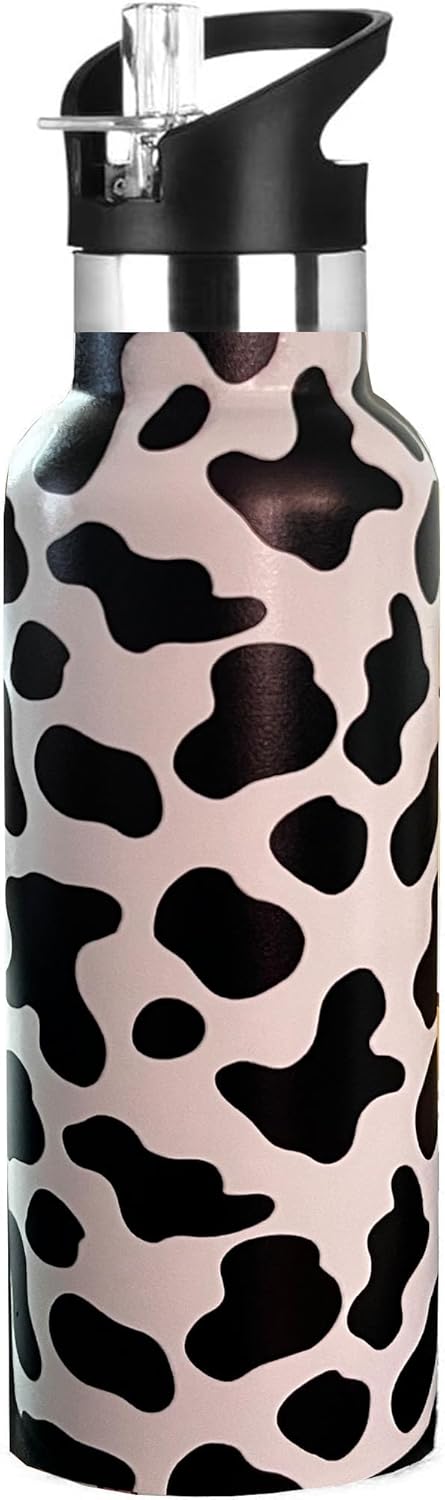 Kids Water Bottle with Straw,Cow Print Bottle Vacuum Insulated Stainless Steel Travel Mugs Tumbler For Sport School Outdoor 20 oz