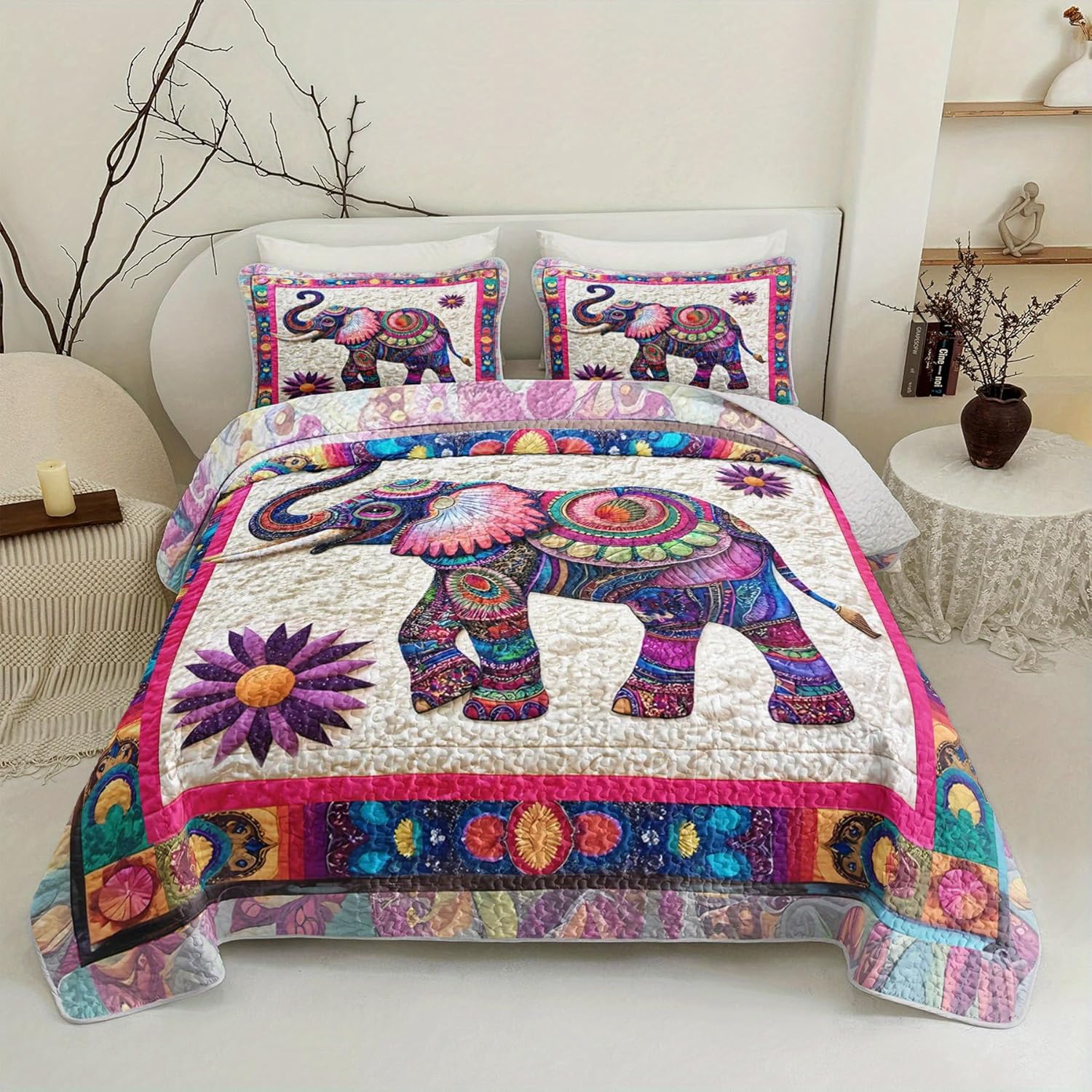 Mandala Elephant Quilt Bedding Set Queen Size for Kid Teen Room Decor,Bohemian Vintage Bedspread Sets Bedding Queen Size,Bohemian Elephant Bed Cover for Boys and Girls Bedroom Decor