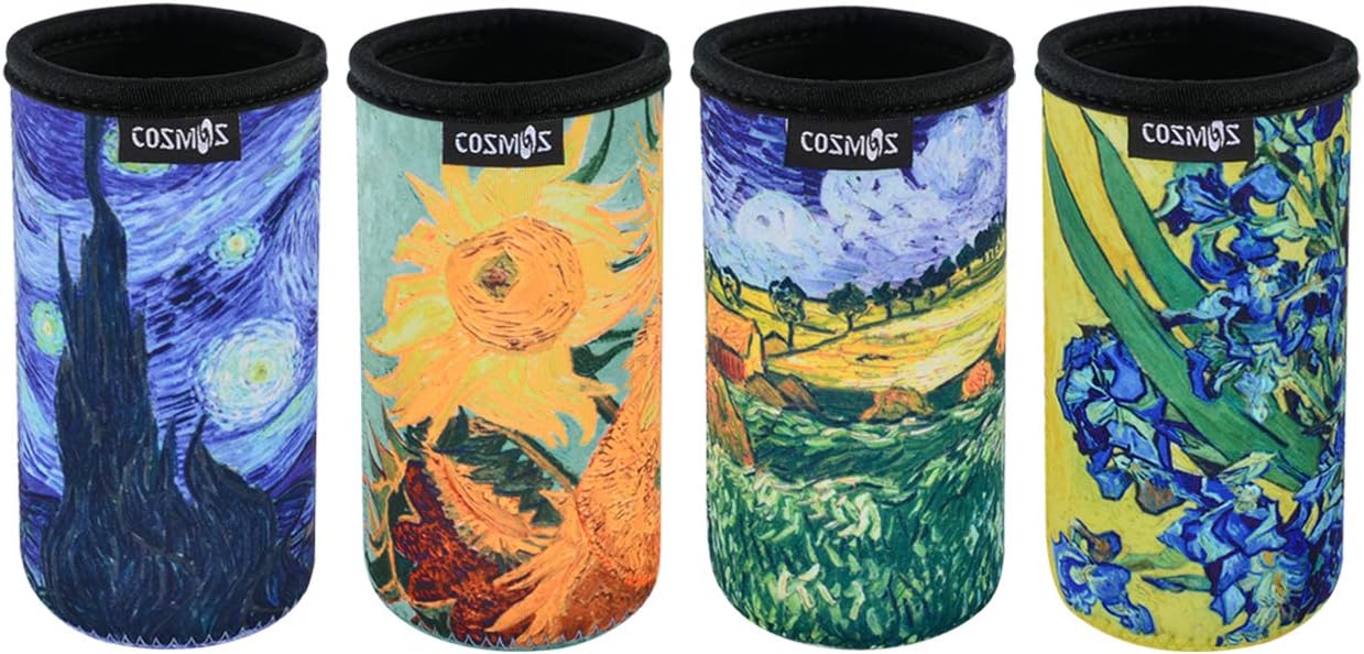 - FUN MULTI COLORS: 4 different Van Gogh Oil Painting Patterns colors. Provides premium appearance and value to the can sleeves. Great for beach, birthdays, parties, events, graduation and bachelorette parties, weddings party, gatherings, fraternities, sororities, outdoors, camping, BBQ’s, family picnic or daily use.