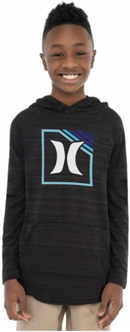 Hurley Boys' Long Sleeve Hooded T-Shirt, Hyper Black, X-Large