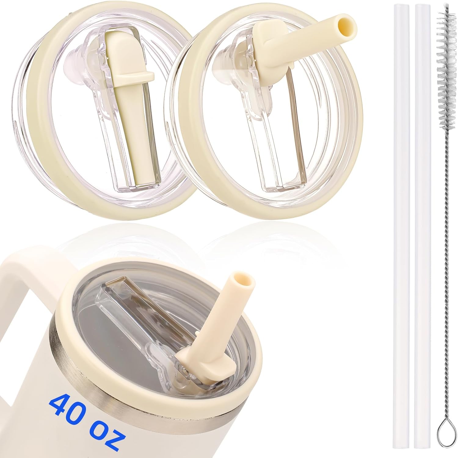 2 Pack Leakproof Stanley Lid Replacement 40 oz for Quencher H2.0 Cup Accessories, Cream-colored, Flip Straw Leak Proof 40oz Tumbler Lid for Stanley, BPA-free Cup Top, Spill Proof Straw Cover