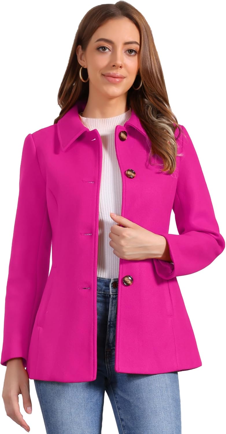 Allegra K Womens Work Office Winter Overcoat Single Breasted Point Collar Pea Coat