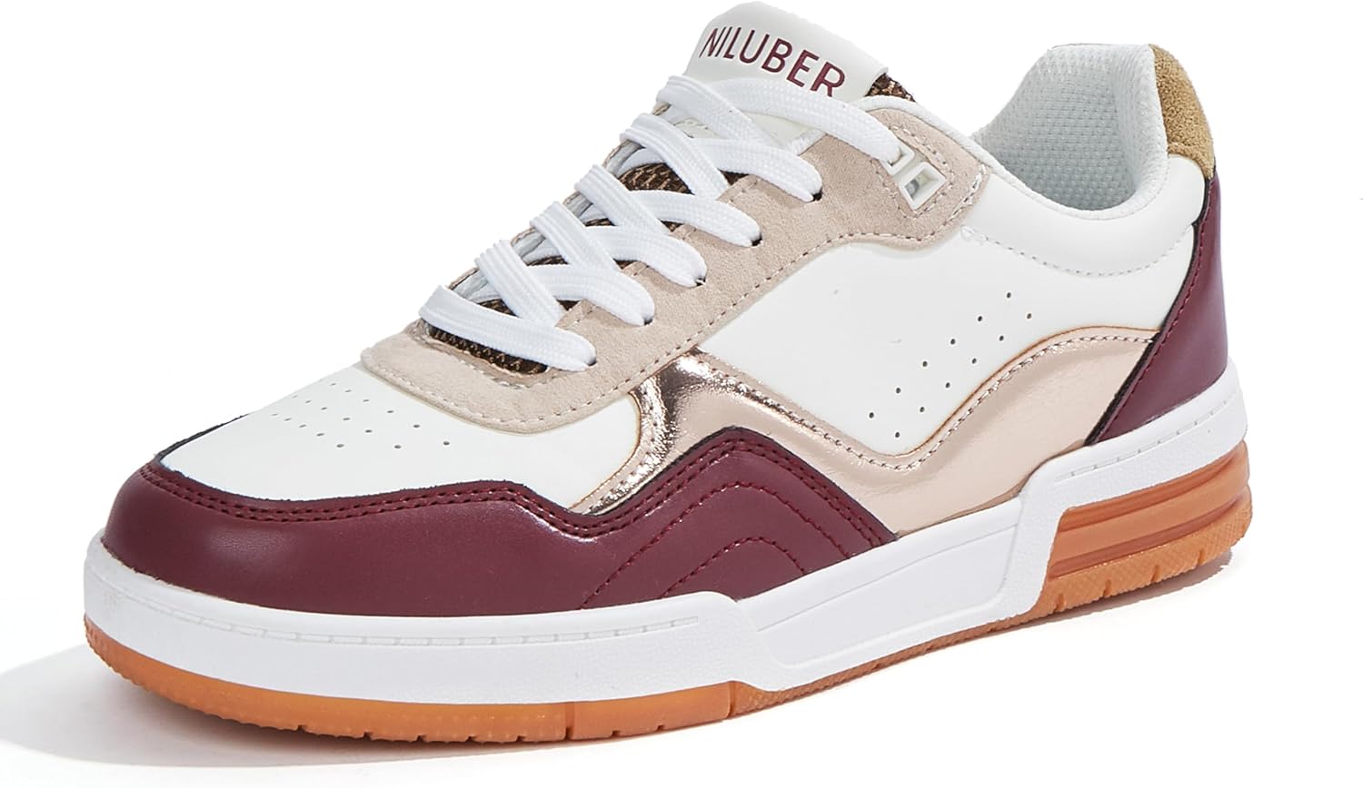 Niluber Women's Fashion Low Top Sneakers - White PU Leather Tennis Shoes-Lace Up Comfortable Casual Waking Shoes