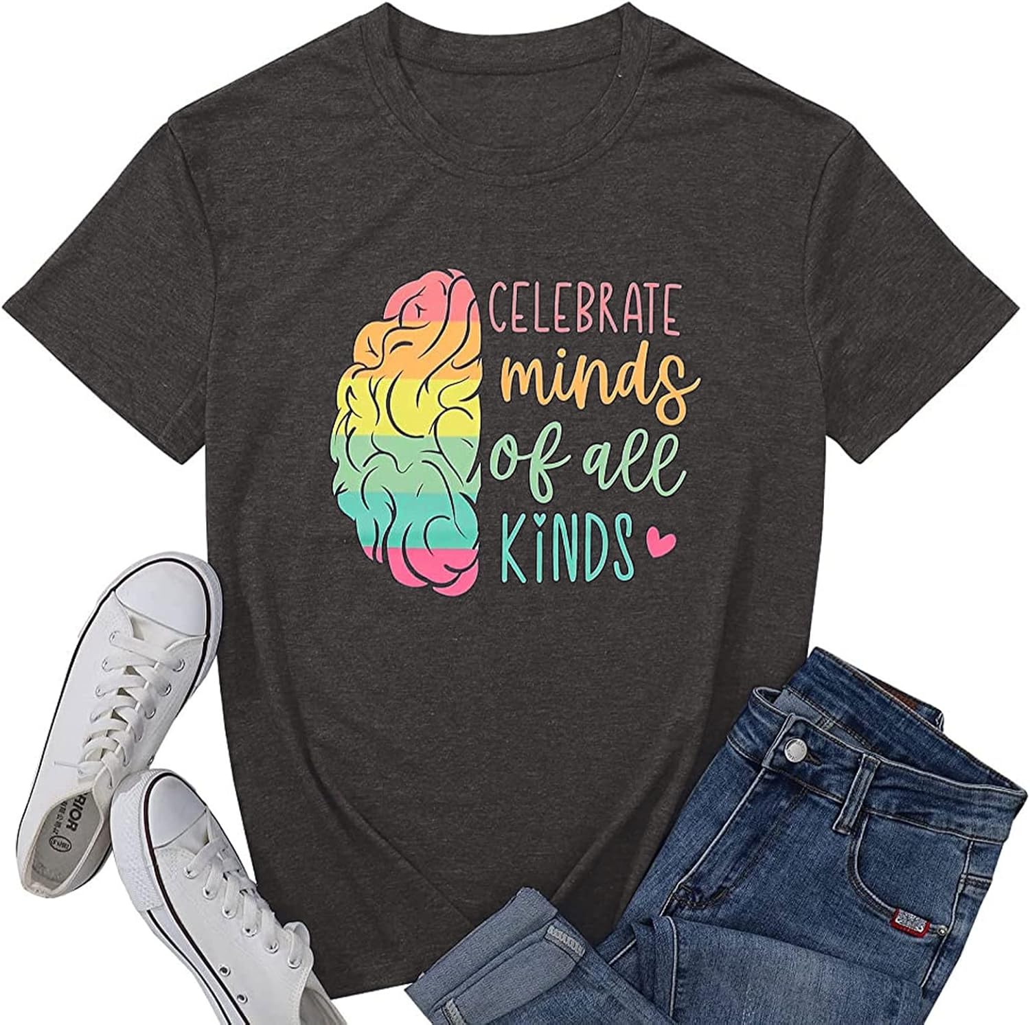 Celebrate Minds of All Kinds Shirt Women Autism Awareness Shirt Teacher Neurodiversity Short Sleeve Tee Top