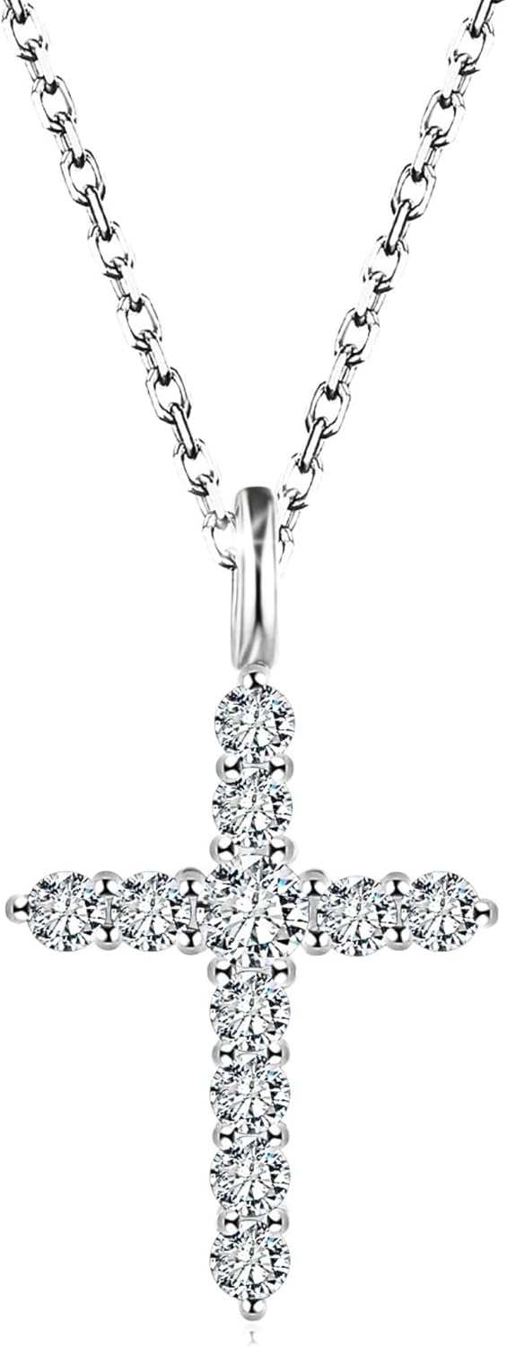 Chic Bijoux Moissanite Cross Necklace for Women 0.03-0.1CT(2-3mm) Round Cut Moissanite Pendant, Sterling Silver with 17.8+1.1 Inch Chain, Jewelry for Mom/Wife