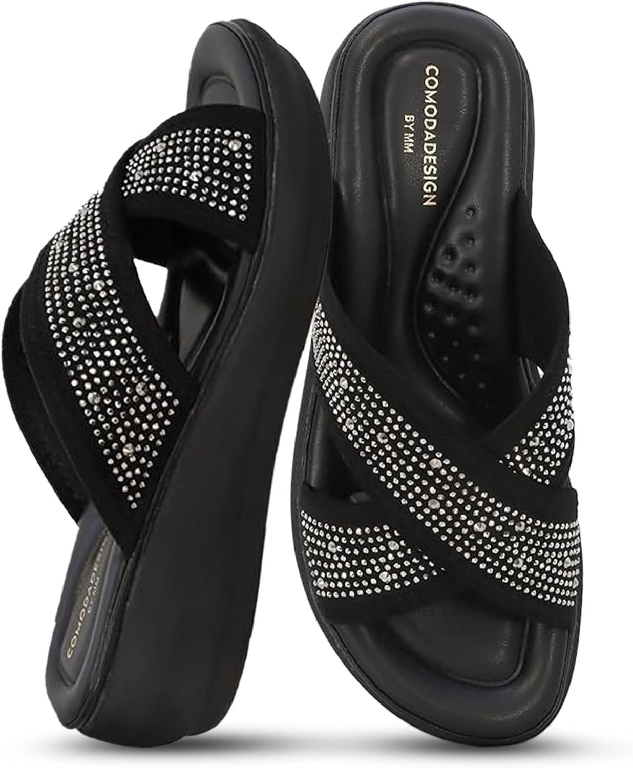 YOKI NOMI-05 Women’s Wedge Sandals with Rhinestone Straps – Bling Sandals, Sparkly Dressy Wedges, Fancy Platform Wedges