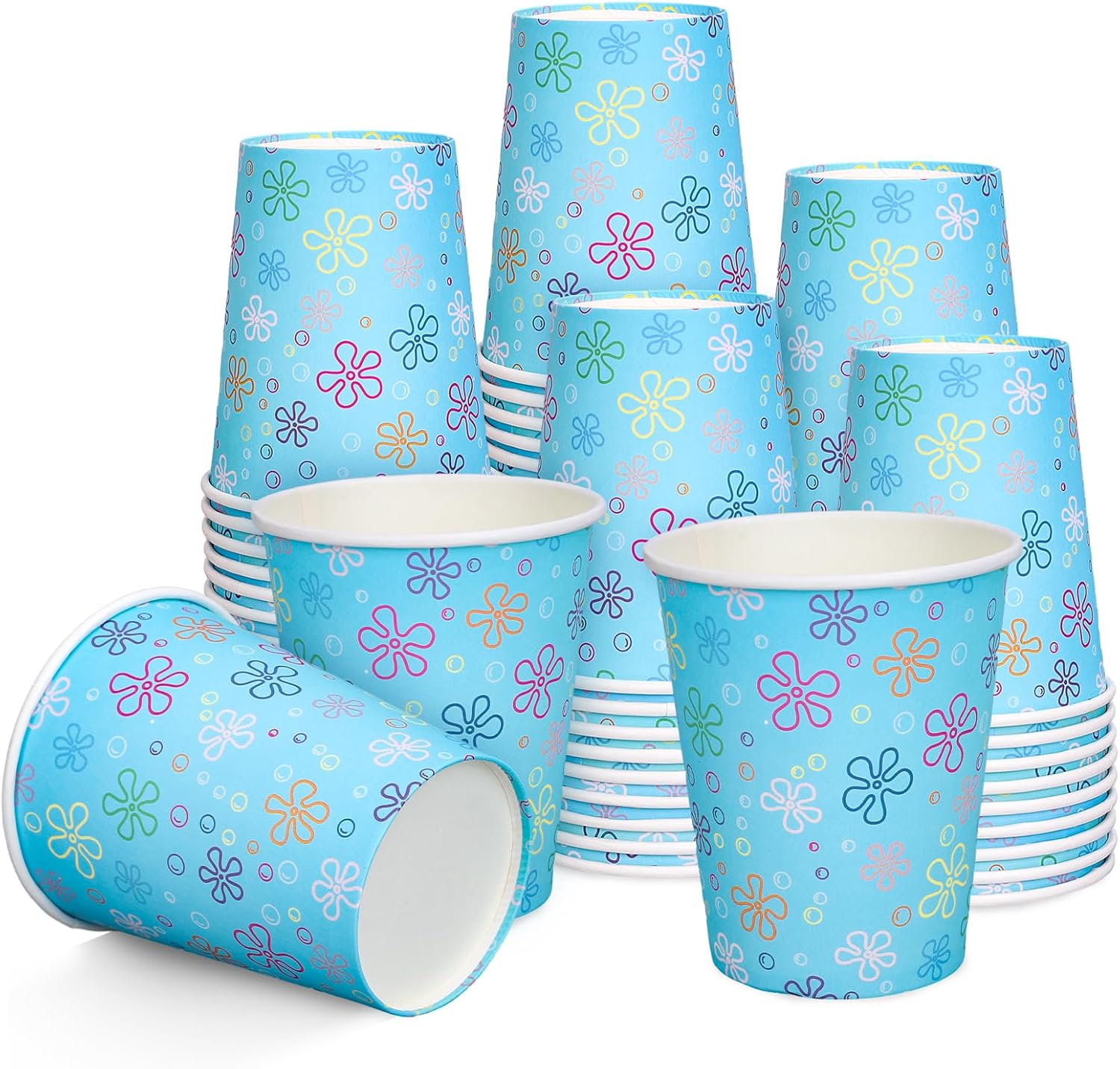 - CARTOON CUPS: Take under the sea as the theme, our disposable cups printed with colorful flowers and bubbles, against the blue background, cartoon lovely and attractive, perfectly match the ocean party vibe and nice addition to your tableware decoration