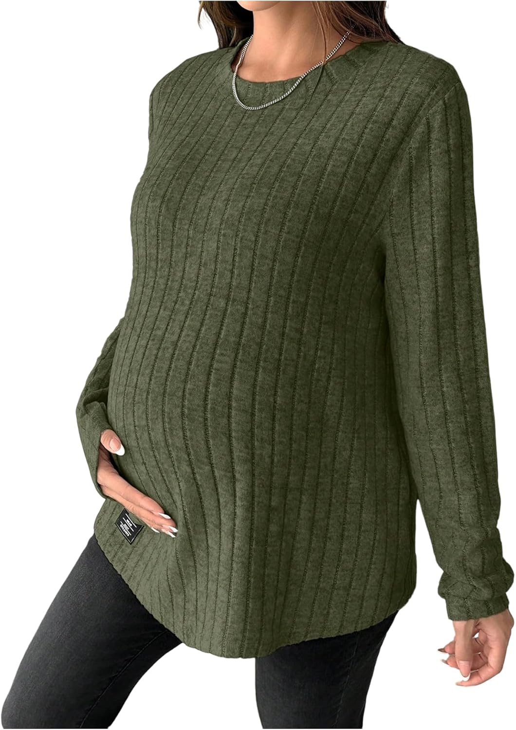 Women's Maternity Clothes Ribbed Knit T Shirts Long Sleeve Crew Neck T-Shirts