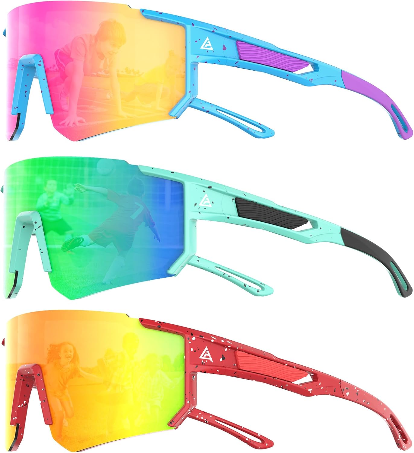 3PACK Kids Sunglasses Youth Baseball Sunglasses for Boys Girls Age 4-14, Softball Cycling UV400 Protection Sports
