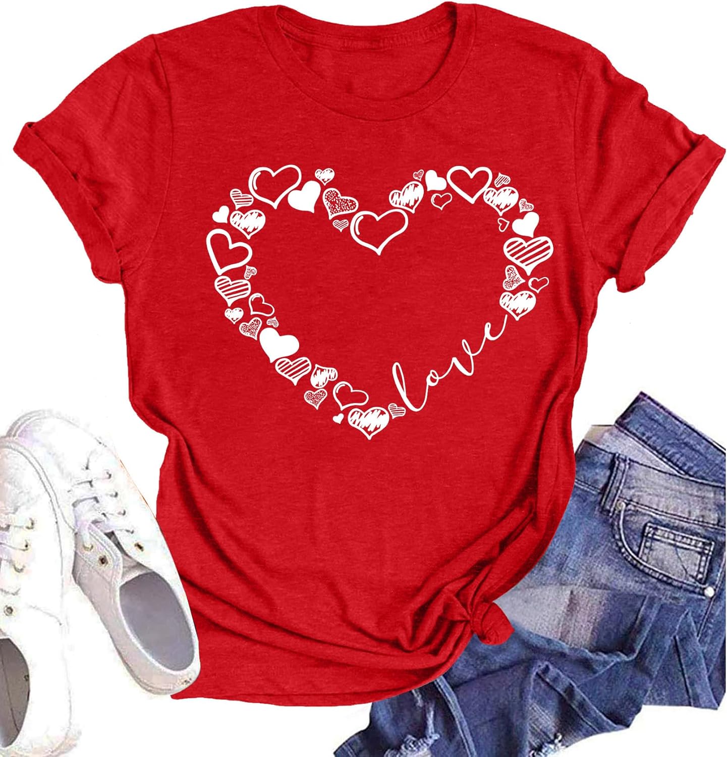 Valentine Day Shirt for Women Love Heart Graphic Shirts Causl Loose Short Sleeve Summer Tops