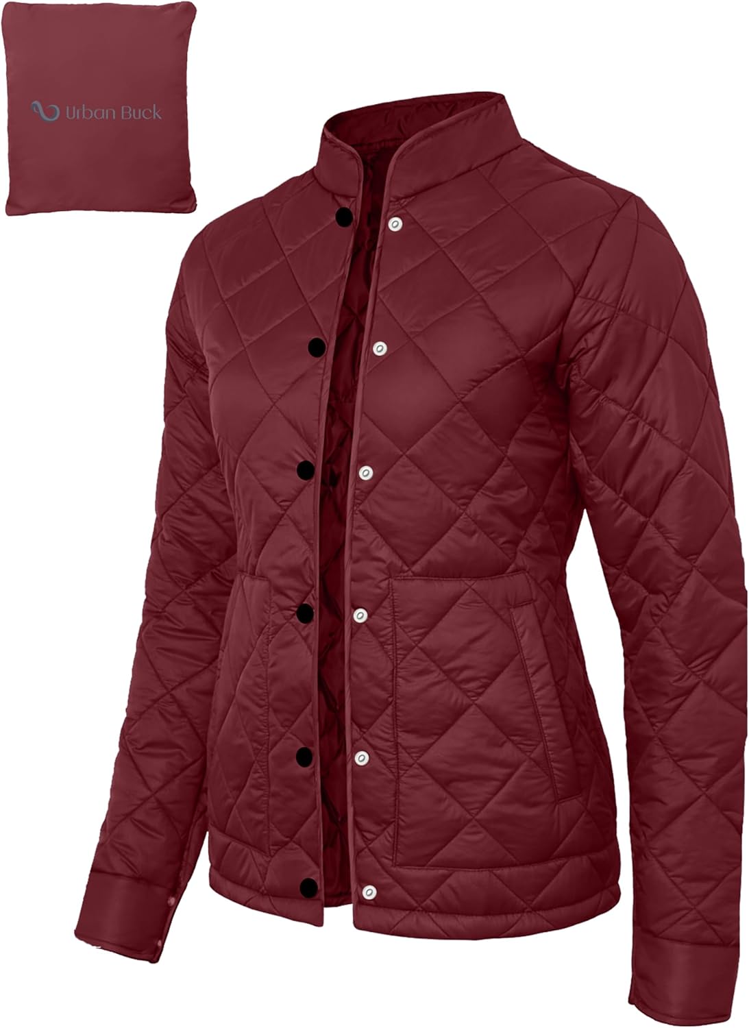 URBAN BUCK Packable Puffer Jacket Women with Hood – 32 Degree Lightweight Quilted Winter Puff Foldable Jacket for Women