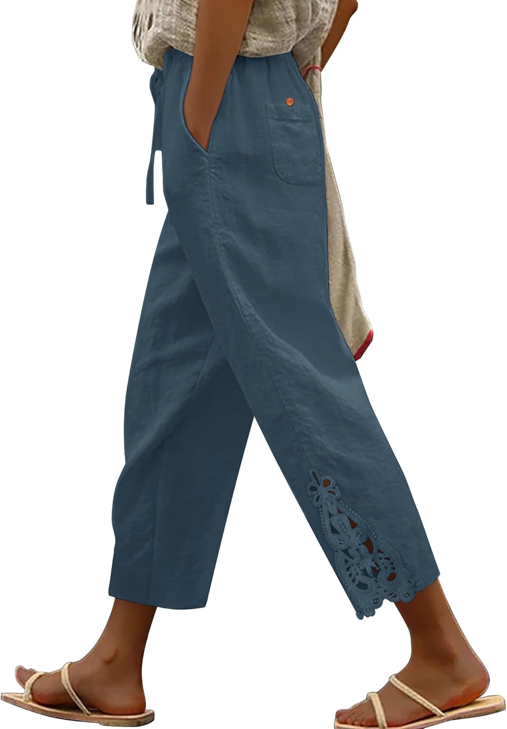 Angerella Womens Cotton Linen Pants Casual Lightweight Drawstring Elastic Waist Trousers Summer Lounge Pants with Pockets