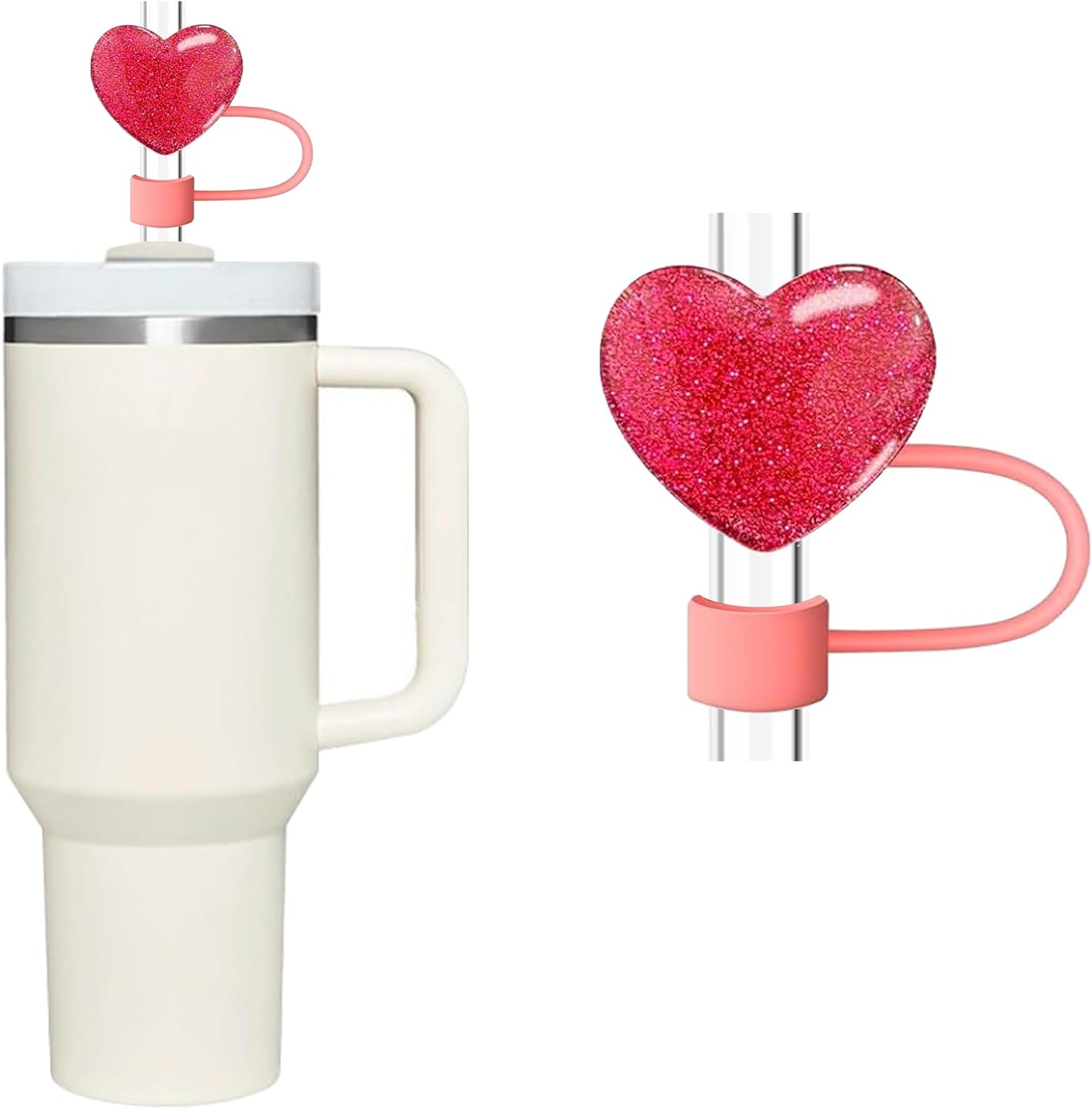 Bling Hearts Straw Cover for Stanley 40&30 Oz Cup, 10mm Silicone Straw Covers Cap for Stanley Cup Accessories, Cute Straw Topper for Tumblers, Straw Cap Stopper for Reusable Straws Tip Lids (Red)