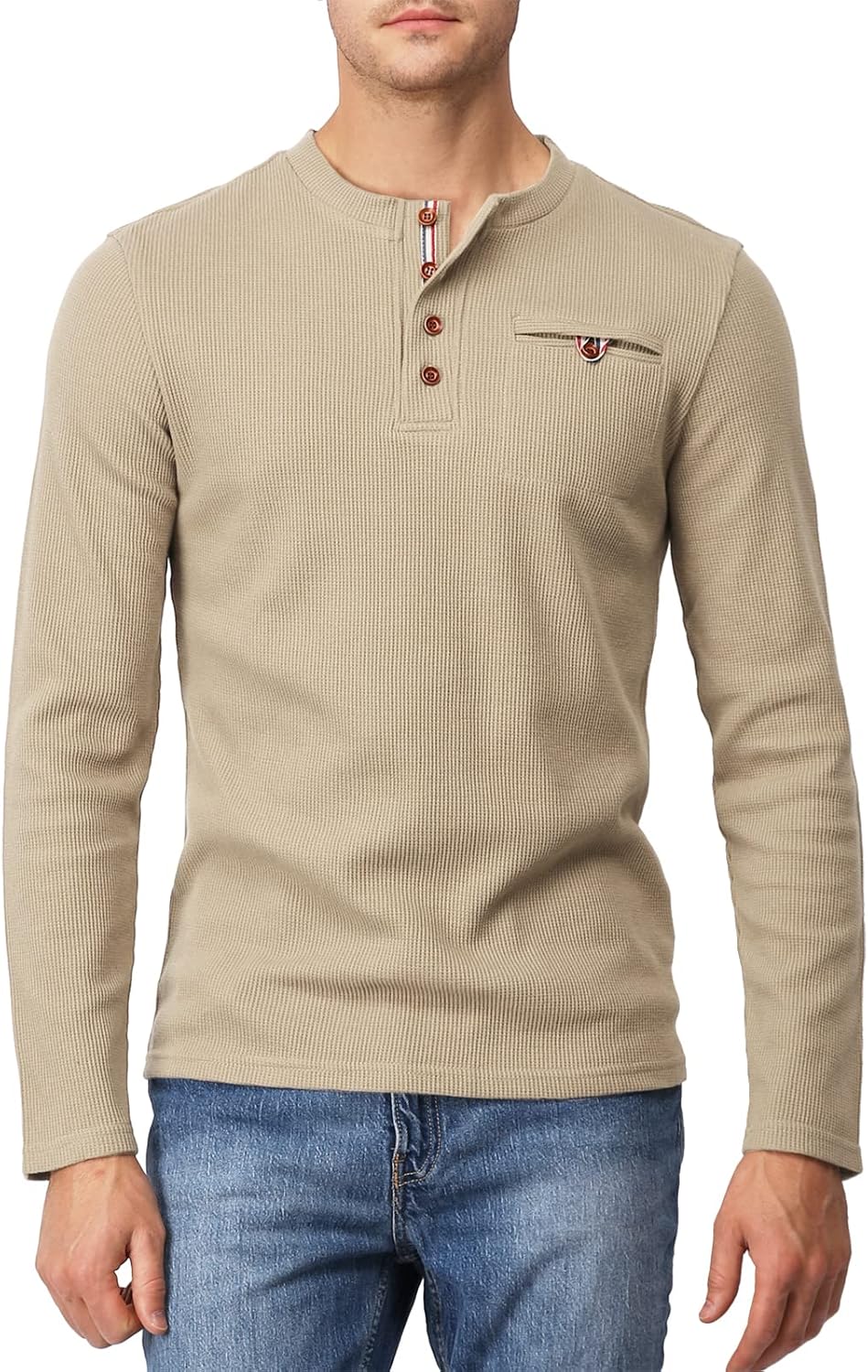 H2H Men's Casual Slim Fit Henley Cotton Shirts Long Sleeve Lightweight Waffle Fabric