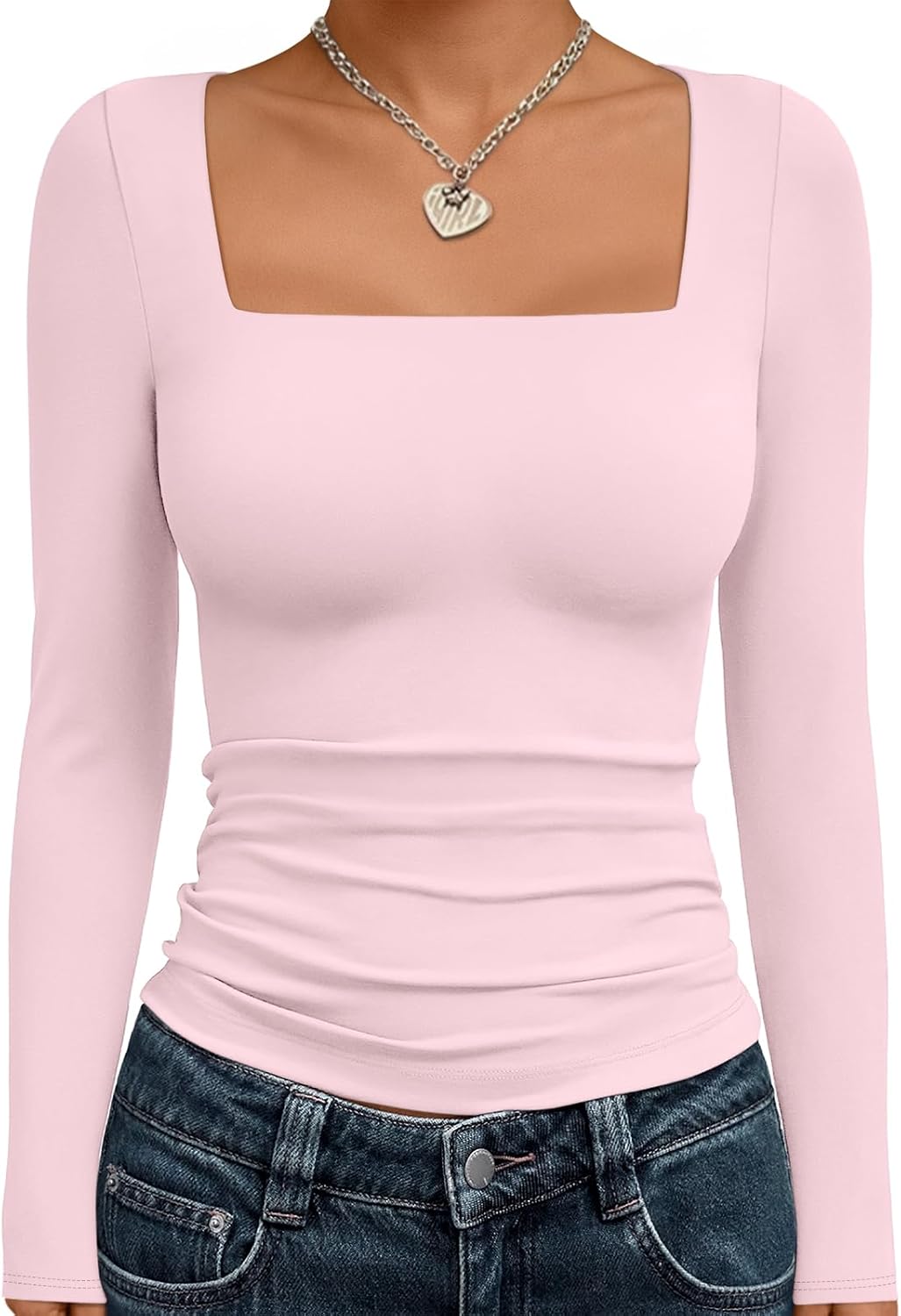 Trendy Queen Womens Cropped Long Sleeve Top - Square Neck Y2K Going Out & Workout Shirts, Soft Stretchy Fit