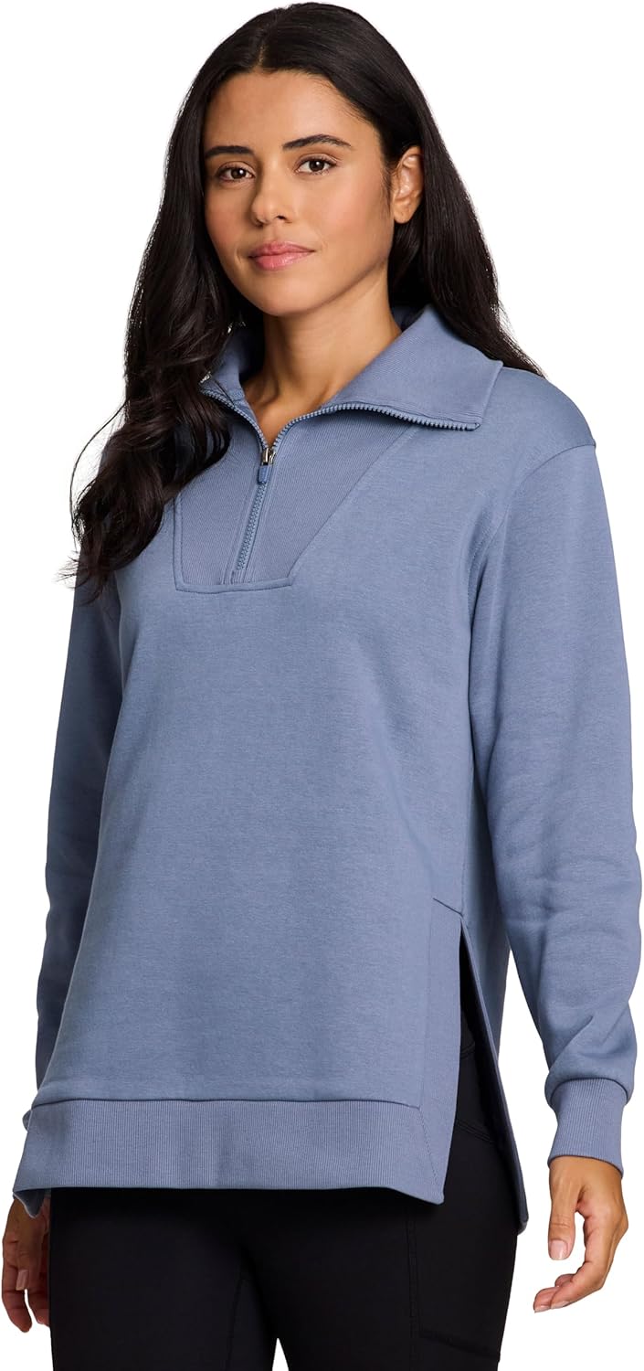 RBX Active Women's Fleece Sweatshirt, Blended Cotton Fleece Tunic Pullover Relaxed Fit Adjustable Neck Sweater