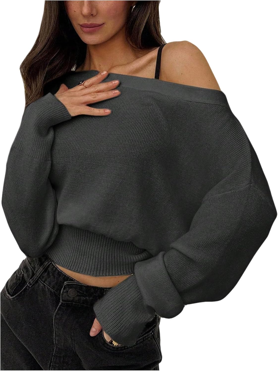 Women's Off The Shoulder Sweater Long Sleeve Knit Pullover Cinched Waist Tops Trendy Fall Outfits