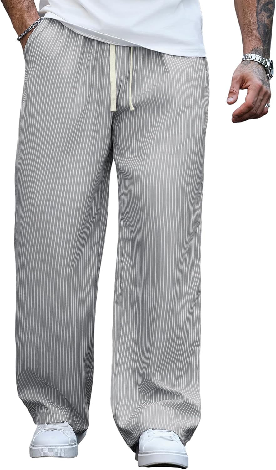 ZAFUL Mens Wide Leg Casual Pants Drawstring Color Block Striped Relaxed Fit Skater Trousers with Pockets