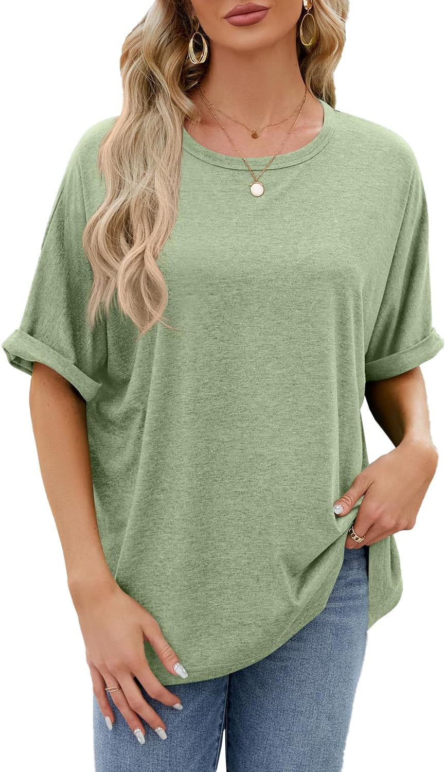 Womens Oversized T Shirts Solid Color Crewneck Casual Summer Tops Short Sleeve Loose Fit Tee
