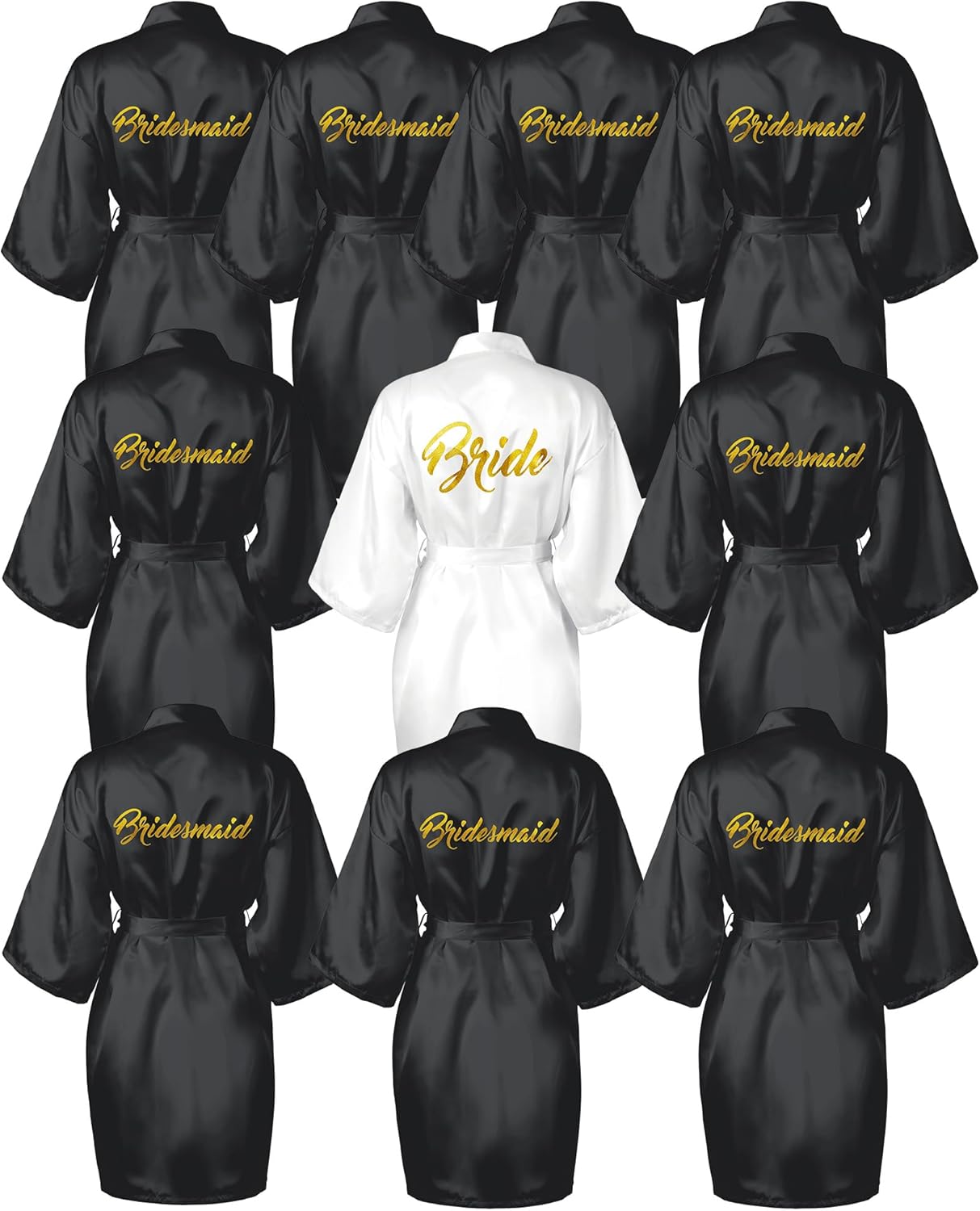 Jecery 10 Pcs Women Bride Kimono Robe Embroidered Getting Ready Satin Bridesmaid Robes for Wedding Party Bridal Shower